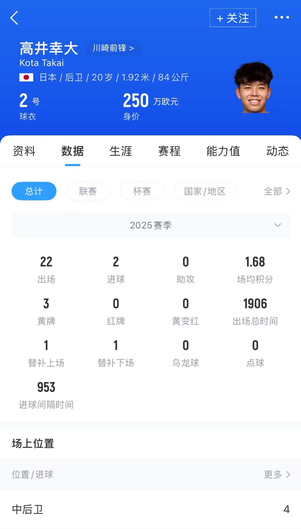 今年亞冠精英聯(lián)賽半決賽,利雅得勝利主場2-3不敵川崎前鋒無緣決賽,高井幸大首發(fā)中衛(wèi)踢滿全場。