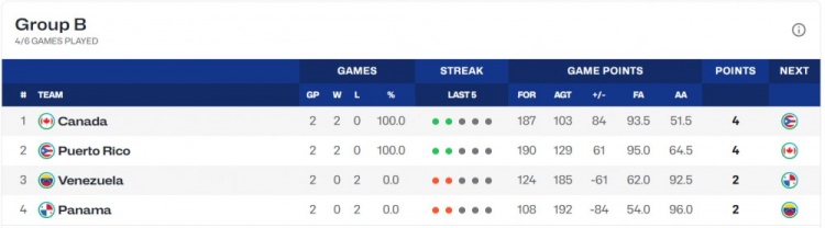 小組賽最后一輪,加拿大男籃和波多黎各男籃將正面對(duì)決,爭(zhēng)奪小組第一。兩隊(duì)都有NBA球員,加拿大擁有萊昂納德-米勒和凱肖恩-喬治,波多黎各有阿爾瓦拉多。