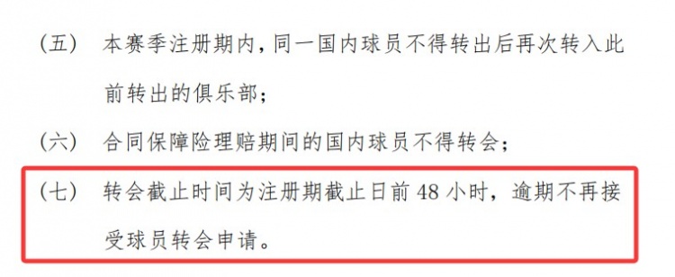 實(shí)際上,就轉(zhuǎn)會(huì)操作來(lái)說(shuō),留給各支球隊(duì)的時(shí)間只有5天了,因?yàn)榘凑找?guī)定,轉(zhuǎn)會(huì)截止時(shí)間為注冊(cè)截止日(8月31號(hào))前48小時(shí),逾期不再受理轉(zhuǎn)會(huì),也就是說(shuō),要完成球員轉(zhuǎn)會(huì),球隊(duì)最晚要在8月29號(hào)向聯(lián)盟提交申請(qǐng)。