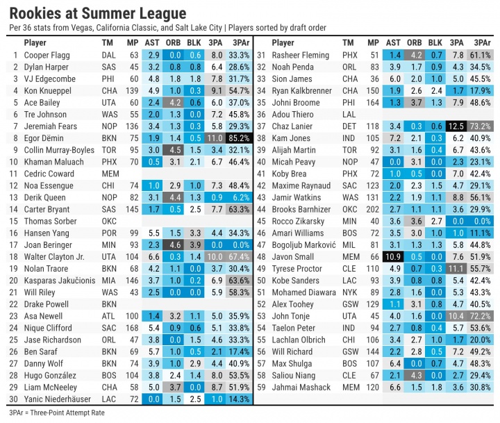 07月23日訊 雅虎開拓者隊記Tom Haberstroh今日曬出了今年夏聯(lián)中的一項數(shù)據(jù)。