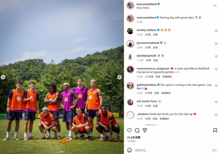 8月2日訊 拉什福德在個人社媒曬出與巴薩隊友亞馬爾、萊萬、孔德、什琴斯尼等人訓(xùn)練的合照,看上去融入非常不錯。