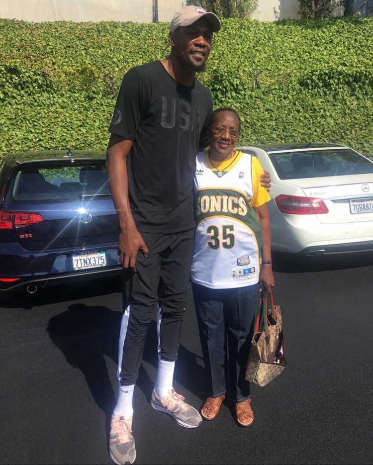 一位網(wǎng)友曬出自己與奶奶的多張合照,照片中奶奶穿著各種杜蘭特的球衣,該網(wǎng)友寫道:“我們把一件紫色的KD球衣放進(jìn)了我奶奶的棺材里,你們就知道她有多喜歡KD了?!?/p>