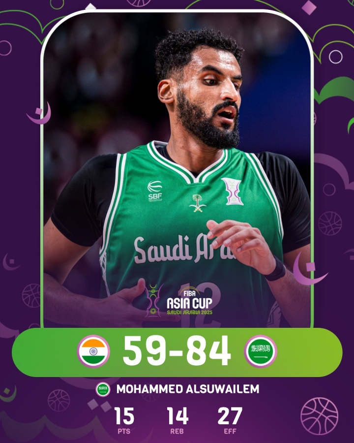 本場比賽,沙特男籃統(tǒng)治了內(nèi)線,全隊45-25的籃板球壓制了印度男籃。2米08中鋒阿爾蘇韋萊姆9投7中,砍下15分14籃板,歸化后衛(wèi)拉赫曼18投6中,三分10中2,得到14分6籃板5助攻。印度男籃布拉10投7中,三分1中1,罰球8中5,空砍20分獨木難支。