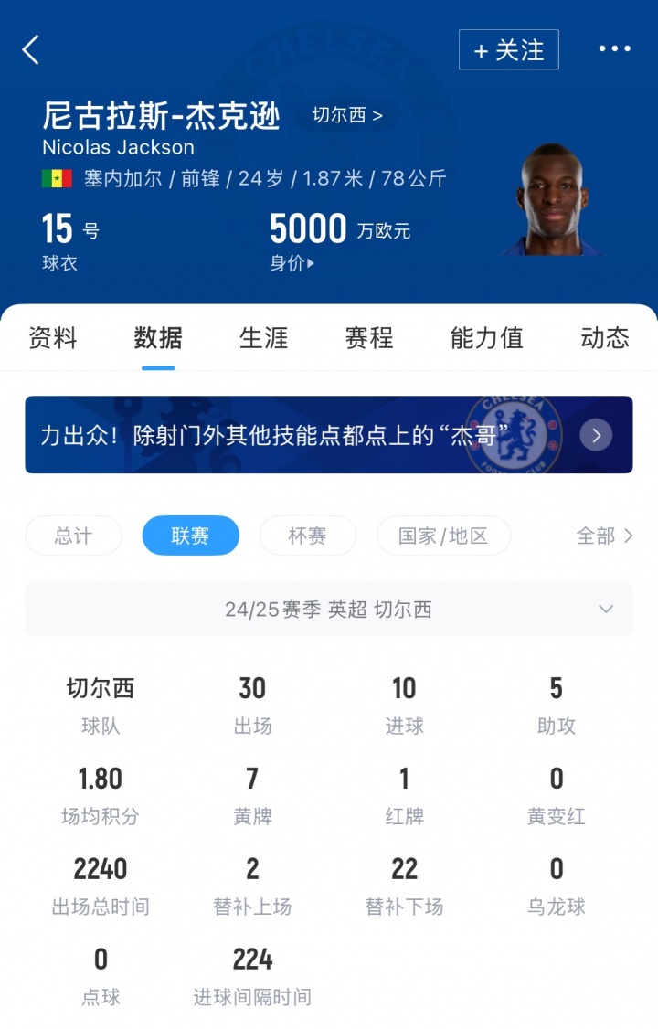 08月27日訊 據(jù)記者雅各布斯消息,切爾西如今愿意外租前鋒杰克遜,但交易要帶強(qiáng)制買斷條款。