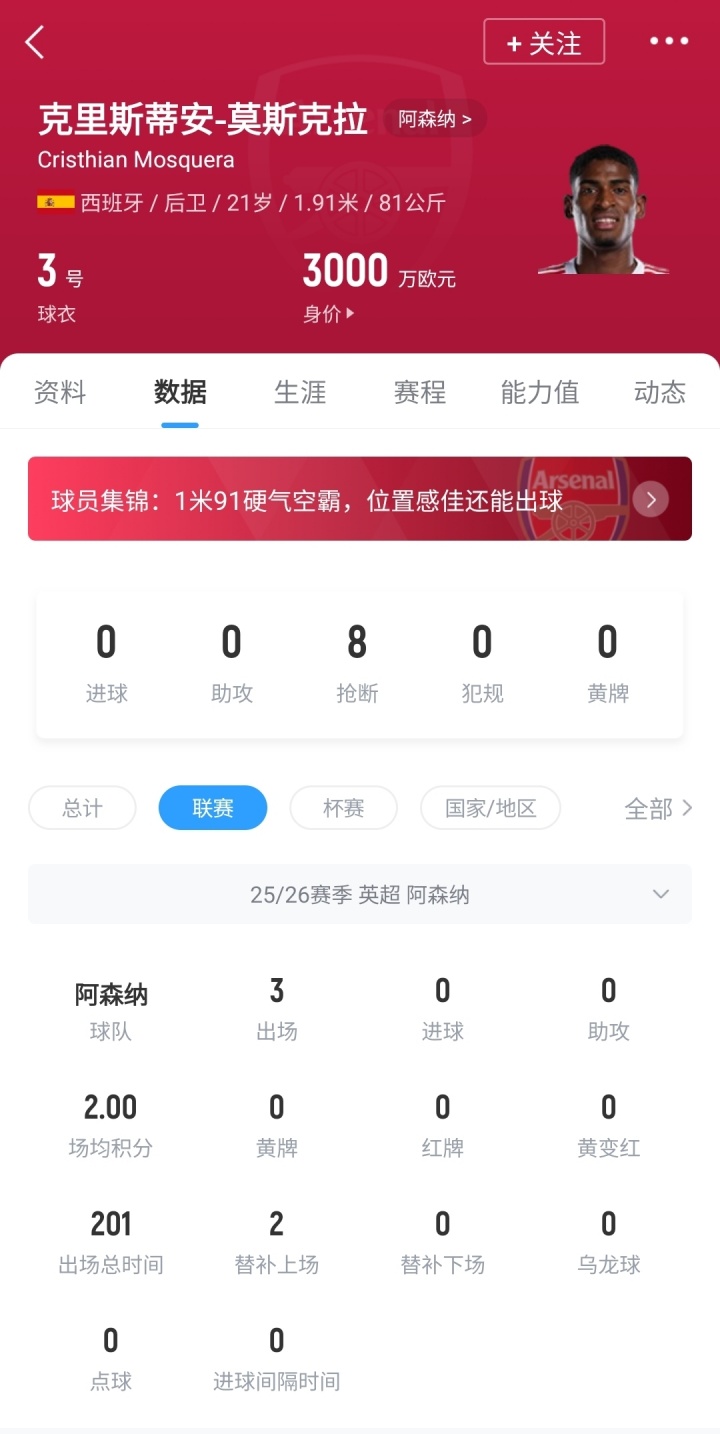 今夏,阿森納僅花費(fèi)1500萬歐轉(zhuǎn)會費(fèi),便從瓦倫西亞簽下了還剩1年合同的莫斯克拉,如今21歲的西班牙中衛(wèi)身價(jià)3000萬歐,本賽季已出戰(zhàn)3場比賽。