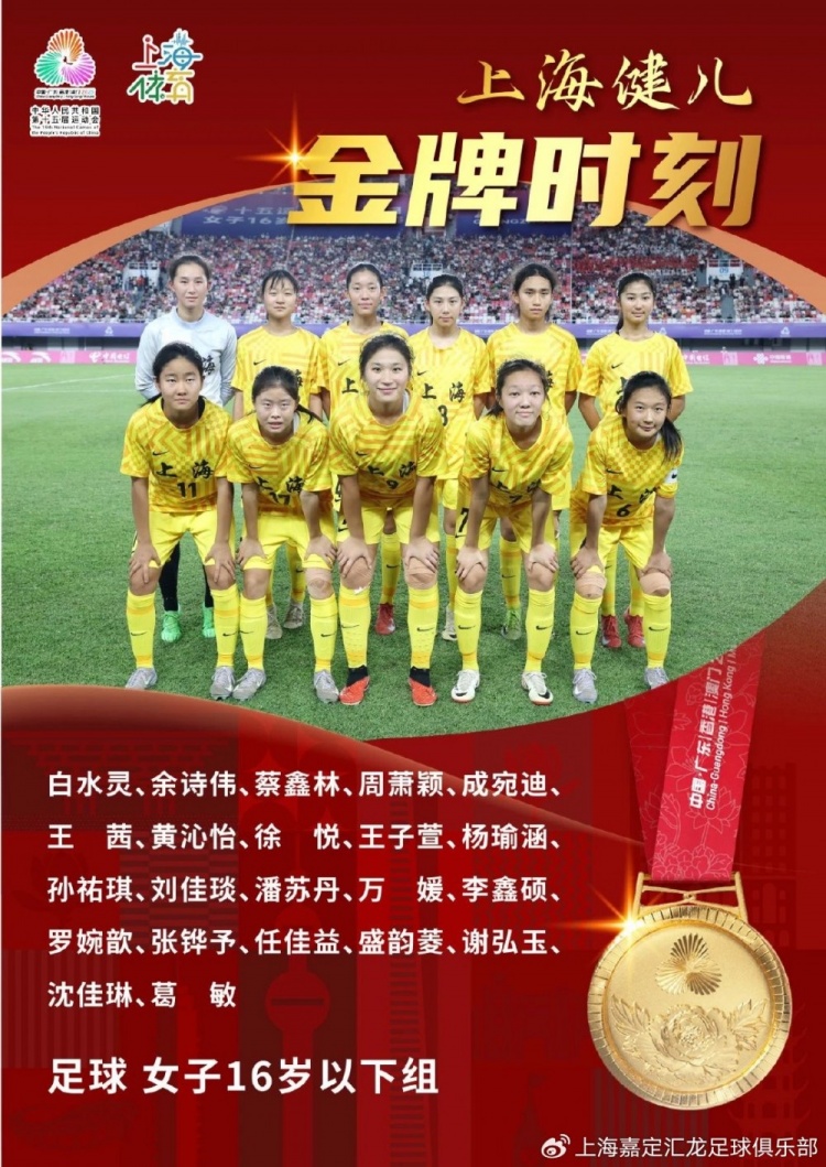 6月10日,第十五屆全運會足球項目女子16歲以下組決賽結束,最終上海女足1-0戰(zhàn)勝廣東女足獲得冠軍,這是本屆全運會產生的首枚競體項目金牌。由嘉定匯龍青訓培養(yǎng)的球員白水靈、任佳益、盛韻菱隨隊參賽,其中白水靈作為首發(fā)門將出戰(zhàn)并在決賽中撲點,幫助球隊奪得金牌。