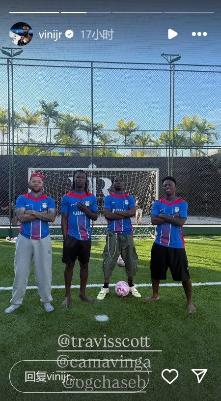 7月21日訊 正值休賽期,皇馬球星維尼修斯更新社媒,曬出與隊(duì)友卡馬文加以及歌手特拉維斯-斯科特在巴西度假的照片,幾人一起聚餐以及踢球。
