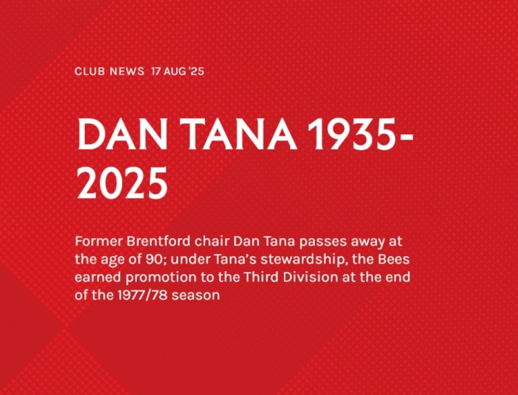 塔納是布倫特福德戰(zhàn)后歷史上最重要和最有影響力的人物之一,他幫助穩(wěn)定了俱樂部,并最終成為主席。在他的領(lǐng)導(dǎo)下,布倫特福德在1977/78賽季末成功升入第三級(jí)聯(lián)賽,當(dāng)時(shí)的主教練是比爾-多金小。塔納一直參與俱樂部事務(wù)直到2002年,那一年他從董事會(huì)辭職。