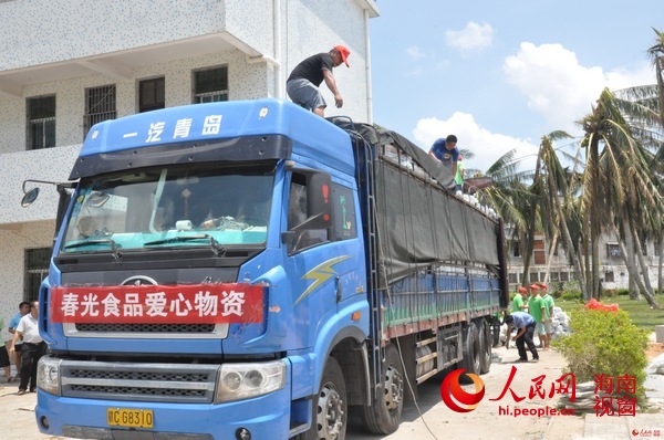 人民網(wǎng)海南視窗文昌7月23日電(記者毛雷 實(shí)習(xí)生喻晨)超強(qiáng)臺風(fēng)“威馬遜”登陸海南第5日,人民網(wǎng)海南視窗聯(lián)合海南春光食品前往受災(zāi)最為嚴(yán)重的文昌市翁田鎮(zhèn),為災(zāi)區(qū)送去急需的14萬平方米防水布料。
