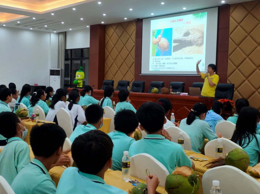 5月26日,椰子王國特色研學課堂迎來了首批研學的學子,中國熱帶農(nóng)業(yè)科學院龍翊嵐教授在研學課堂上的生動教學讓學子們飽嘗了一頓“椰子文化大餐”。