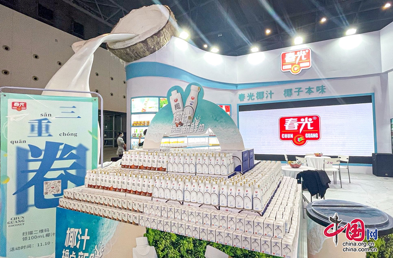 在參展商品中,春光食品帶來的春光椰汁、一口鮮氣椰汁備受矚目。