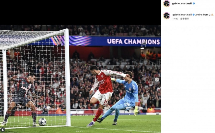 賽后,馬丁內(nèi)利更新社媒曬配文照慶祝勝利:兩戰(zhàn)兩勝????